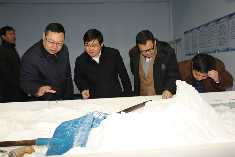 2月7日下午,江蘇省鹽業(yè)集團副總經(jīng)理鄭海龍一行在集團公司副總經(jīng)理楊國新陪同下到金橋制鹽公司調(diào)研考察。鄭總一行先后參觀了該公司雪花鹽車間、加工鹽車間、包裝鹽車間,對該公司生產(chǎn)環(huán)境、硬件設(shè)施、車間布局、生產(chǎn)工藝等給予了充分肯定。隨后,雙方圍繞產(chǎn)品結(jié)構(gòu)、價格調(diào)控、渠道建設(shè)等內(nèi)容展開討論,并就2018年的合作事宜進行了洽談。