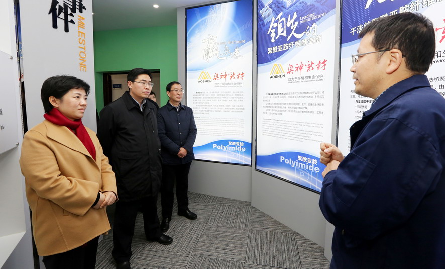萬聞華一行先后參觀了奧神新材料公司展廳和生產車間,聽取了該公司目前的發(fā)展情況匯報,詳細了解高性能纖維產品的相關性能和發(fā)展前景,對該公司在纖維行業(yè)等方面取得的成績給予充分肯定。萬聞華希望奧神新材料公司要進一步突出“高、新、優(yōu)”特色,不斷推動產業(yè)高端化、規(guī)?;?、集聚化發(fā)展,為推動全市纖維新材料產業(yè)發(fā)展做出新的貢獻。