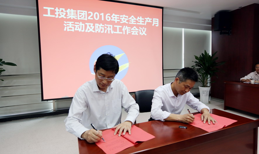 6月2日下午,集團公司召開2016年“安全生產(chǎn)月”活動部署及防汛防旱工作會議。集團公司總經(jīng)理胡建明出席會議并講話。副總經(jīng)理張其海對“安全生產(chǎn)月”活動進行布署,并代表集團公司與各單位簽定防汛責(zé)任狀??偨?jīng)濟師陳如軍主持會議,并作2016年防汛工作動員講話。安全總監(jiān)胥廣會簡要點評了前一階段防汛檢查及專家安全檢查情況。各單位主要負(fù)責(zé)人、分管安全工作副總經(jīng)理、安全部門負(fù)責(zé)人等參加了會議。