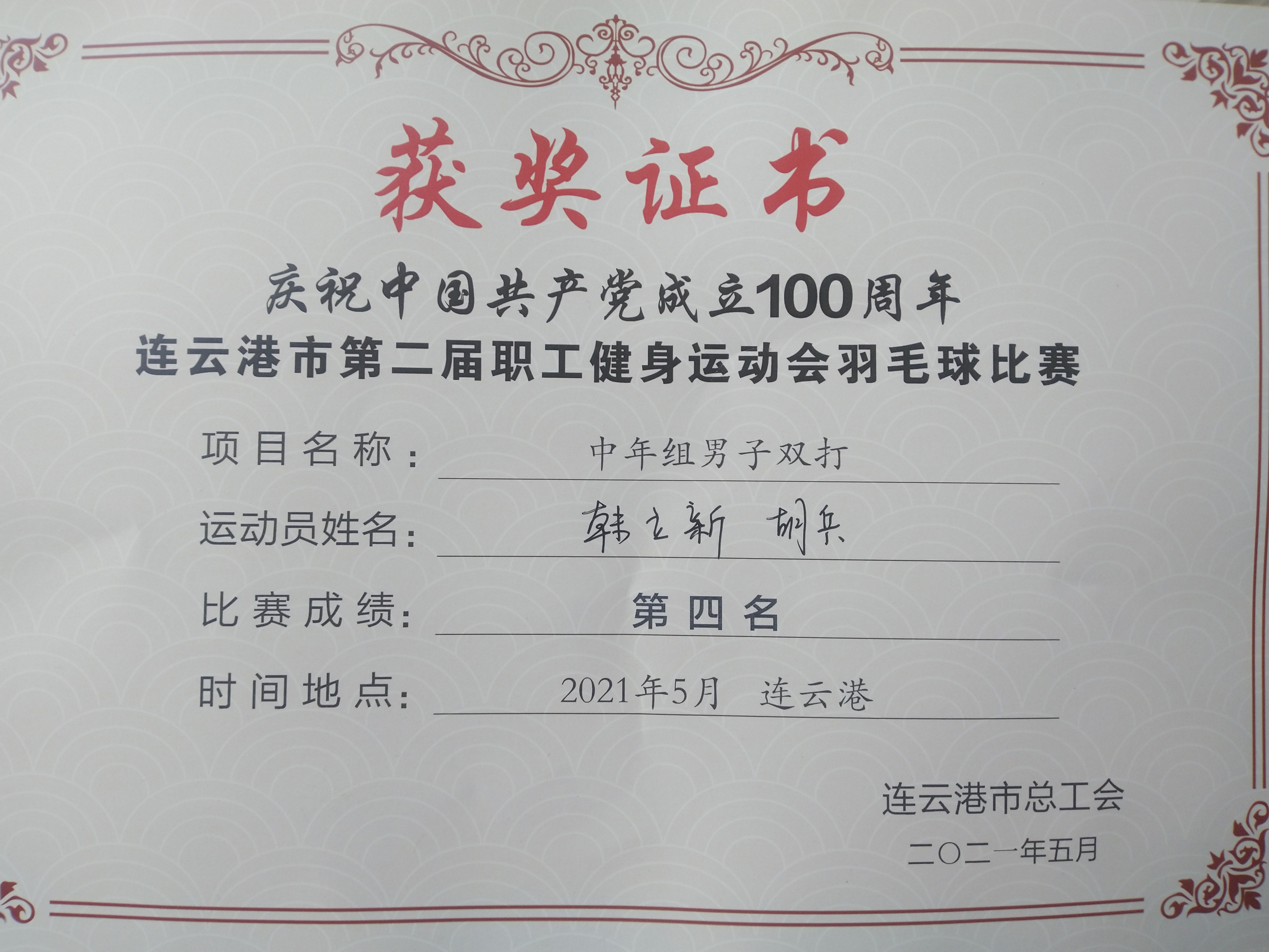 5月28-29日,市第二屆職工健身運動會羽毛球比賽在振興李寧羽毛球館舉辦,來自全市34支代表隊,293名選手參賽。經(jīng)過激烈角逐,韓立新、胡兵在中年男子雙打比賽中取得了第四名的好成績。