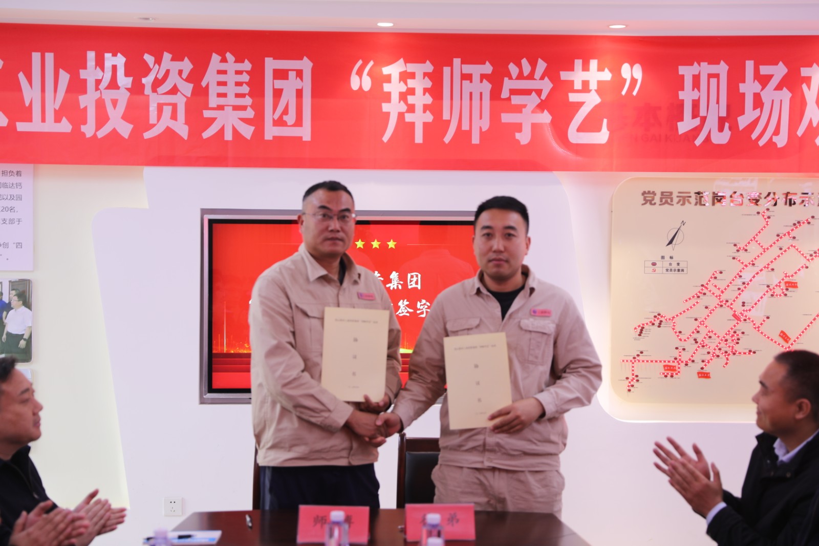 觀摩結(jié)束后,活動(dòng)進(jìn)入師徒代表交流環(huán)節(jié)。市勞模王建作為師傅代表率先發(fā)言,他結(jié)合自身帶徒經(jīng)歷,毫無保留地分享了培養(yǎng)新人的心得感悟。隨后,在全體與會(huì)人員的共同見證下,師徒雙方鄭重簽訂 "拜師學(xué)藝" 結(jié)對(duì)協(xié)議書,這一紙契約不僅是責(zé)任的傳遞,更是匠心的延續(xù)。活動(dòng)現(xiàn)場(chǎng)還舉行了贈(zèng)書儀式,一本本凝聚著知識(shí)與經(jīng)驗(yàn)的書籍從師傅手中傳遞到徒弟手中,猶如一盞盞明燈,照亮了徒弟們的成長之路。