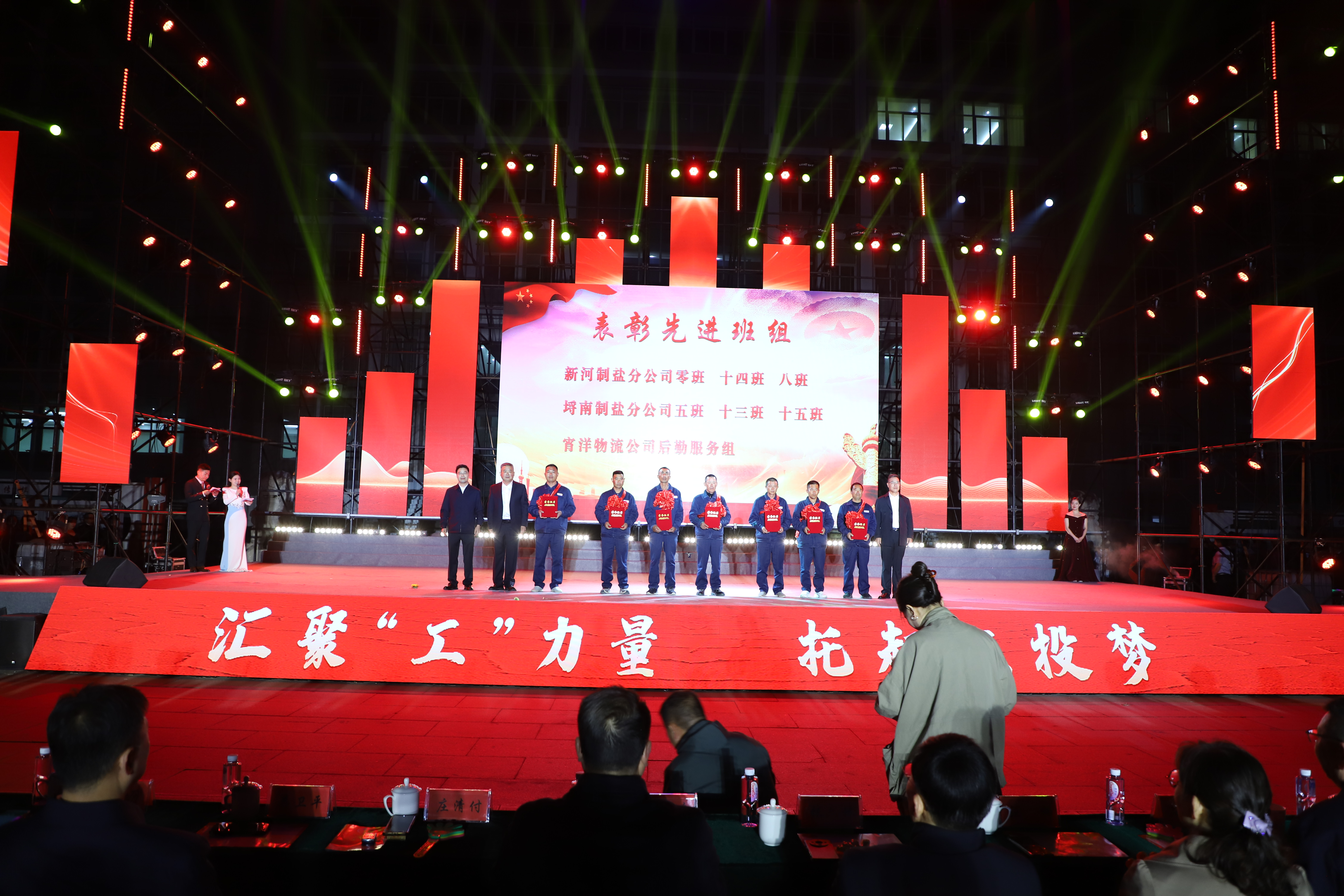 本次文藝匯演有歌舞、三句半、音樂(lè)快板、朗誦、相聲、歌曲串燒、歌曲獨(dú)唱、大合唱等豐富多彩的節(jié)目,其表演形式和精彩內(nèi)容引人入勝,火熱絢麗的舞臺(tái)、貼近職工生活的節(jié)目?jī)?nèi)容、公司熱火朝天的奮斗場(chǎng)景,呈現(xiàn)了灌西人對(duì)企業(yè)的深沉情感和對(duì)工作生活的激情與熱愛(ài)。演出在開(kāi)場(chǎng)群舞《盛世歡歌》拉開(kāi)帷幕,整個(gè)演出分為“禮贊·勞動(dòng)最光榮”“鑄魂·勞動(dòng)最崇高”“閃耀·勞動(dòng)最美麗”“輝煌·勞動(dòng)最偉大”四個(gè)篇章,三句半《凝心聚力譜新篇》、舞蹈《沸騰的鹽灘》、音樂(lè)快板《后發(fā)先至看工投》等都是灌西職工自編自演的節(jié)目,充分展現(xiàn)了灌西員工朝氣蓬勃、奮發(fā)向上的精神面貌,以及對(duì)公司創(chuàng)新發(fā)展、職工幸福安康的美好祝愿。灌西公司黨委書(shū)記、董事長(zhǎng)孫政權(quán)和金航公司黨總支書(shū)記、總經(jīng)理莊清付分別登臺(tái)獻(xiàn)藝,為大家表演了歌曲獨(dú)唱《我是一條小河》和配樂(lè)詩(shī)朗誦《我驕傲,我是中國(guó)人》,得到職工觀眾們熱烈的掌聲。小合唱《咱們工人有力量》、大合唱《新時(shí)代新家園》《沒(méi)有共產(chǎn)黨就沒(méi)有新中國(guó)》等節(jié)目把現(xiàn)場(chǎng)的氣氛推向了高潮,有力展現(xiàn)了全公司職工們激情澎湃、昂揚(yáng)奮進(jìn)的精神面貌。在文藝演出中間,還分別對(duì)公司各條戰(zhàn)線的勞模先進(jìn)代表、先進(jìn)單位、部門和班組進(jìn)行了表彰。(西宣)