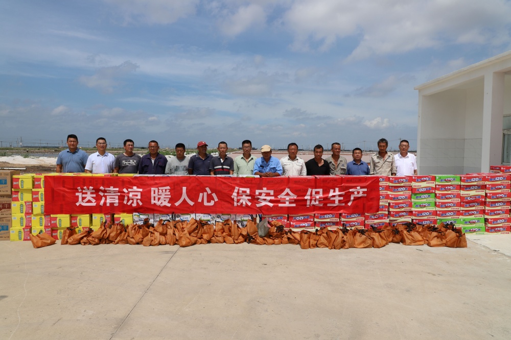 7月中旬的鹽場灘頭,烈日是毫無情面的主宰,把鹽田曬得泛出刺目的白光,那光里藏著鹽分的結晶,也藏著蒸騰的暑氣。公司黨委書記、董事長孫政權帶領慰問組來到這里時,鹽工們正在這片光與熱中專注地除硫、修復抗災設施。“師傅們辛苦了!這么熱的天可得注意防暑!”孫政權快步走上前,將裝有綠豆、白糖的“清涼禮包”遞到職工手中,手掌觸碰到他們被汗水浸濕的工裝,他不禁加重了語氣叮囑道:“一定要合理安排作息時間,千萬別硬扛著,只有保持身體健康,才能以充沛的體力和飽滿的熱情投入到安全生產等各項工作中去?!?/span>