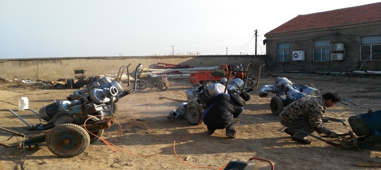 為確保一月底前完成扒鹽設備維護保養(yǎng)工作,日前,機械設備服務中心召開班組骨干會議,進一步明確維修任務,細化、量化到人頭,注重維修安全,向目標沖刺。該中心機修人員能不畏嚴寒,搶時間維修保養(yǎng)扒鹽設備,目前10臺帶鹵扒鹽唐30、6臺破碴唐30、10臺扒鹽大架已全部維護結束。20臺鹽泵已進入上漆保養(yǎng)階段。(下圖為設備上漆保養(yǎng))