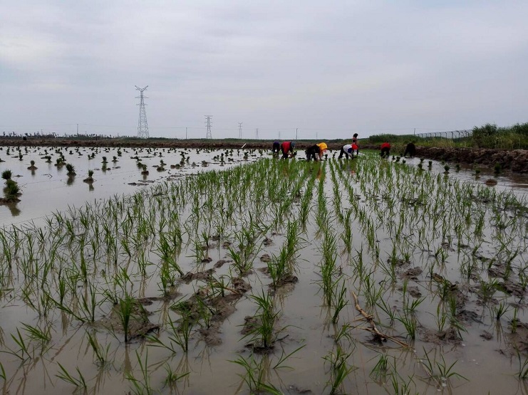 時下正值水稻插秧的大好時節(jié)。6月5日,實業(yè)公司組織人員四十余人,對農業(yè)分公司埒南片區(qū)的90畝稻田進行適時插秧。歷時3天,今日即可完成插秧任務。 連日來,工人們克服天氣炎熱等因素,搶時間趕進度。從運苗、分苗到插種,田地里呈現(xiàn)一片忙碌景象。從遠處看綠油油的一片,一株株嫩苗整齊地排列在水田里。下一步將做好插秧后的排堿、灌溉、施肥等工作,為今年水稻豐收打下堅實的基礎。(史祥燕)