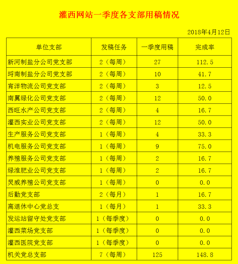 灌西網(wǎng)站一季度各支部用稿情況