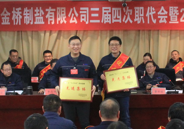 2月2日上午,金橋制鹽公司召開三屆四次職代會暨2023年度表彰大會。公司黨委書記、董事長、總經(jīng)理田磊作《工作報告》,黨委副書記、紀委書記、工會主席曹開明主持大會,公司領(lǐng)導(dǎo)班子成員及職工代表出席會議。