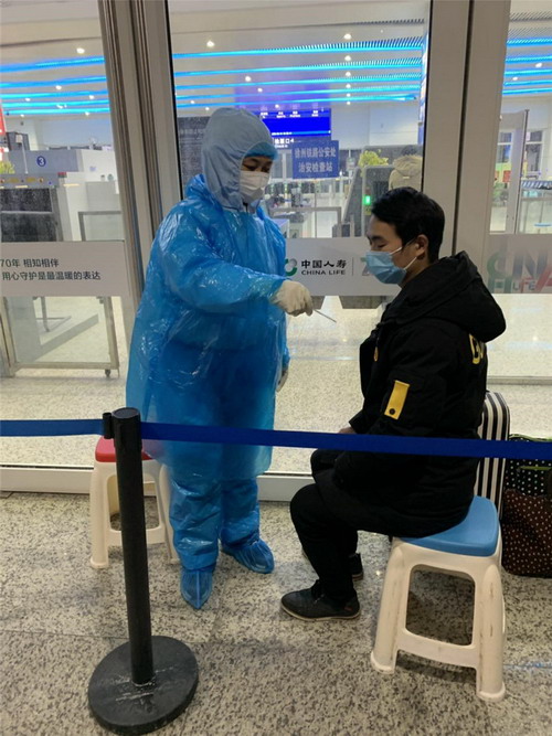 朱詠梅是來自江蘇金橋制鹽有限公司的普通員工,在連云港市志愿者協(xié)會的統(tǒng)一安排下,每天到連云港市高鐵站測溫點配合醫(yī)務(wù)人員為乘客檢測體溫,并協(xié)助醫(yī)務(wù)人員對體溫出現(xiàn)異常的乘客進行復(fù)查。每天的服務(wù)都到深夜零點,等到送走最后一位乘客才回家。