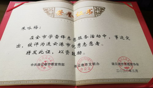 參加疫情防控志愿服務(wù)以來,朱詠梅一天都沒有休息,已為超過2萬名旅客檢測體溫。由于事跡突出,在全市學(xué)雷鋒志愿服務(wù)活動中,被評為連云港市優(yōu)秀志愿者。工作期間,渴了不敢喝水,餓了就吃泡面,雖然很辛苦,但是她覺得很自豪,她說:“我是一名預(yù)備黨員,也是一名國企職工,比起那些奮戰(zhàn)在疫情防控一線的醫(yī)務(wù)人員,我做的太少了;當(dāng)前,全國人民都投入到新冠肺炎疫情防控工作中來,我只是為防控工作貢獻了自己的微薄的力量,我相信只要我們團結(jié)一心、眾志成城,就一定能早日戰(zhàn)勝疫情,早日打贏這場沒有硝煙的戰(zhàn)爭!(凌家佳)