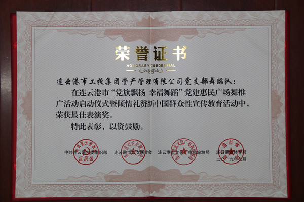 7月16日,連云港市“黨旗飄揚幸福舞蹈”黨建惠民廣場舞推廣活動啟動儀式暨群眾性宣傳教育活動在市文化藝術(shù)中心舉行。啟動儀式上,來自工投集團(tuán)資產(chǎn)管理公司舞蹈隊登臺展演,榮獲市委組織部、市婦聯(lián)、市文廣旅局、市體育局聯(lián)合頒發(fā)的“最佳表演獎”。 為了參加這次活動,公司舞蹈隊12名隊員進(jìn)行了近一個月的辛苦排練。隊員們在表演中動作精準(zhǔn),以零失誤完成各個動作,獲得觀眾熱烈掌聲和高度評贊。此次登臺演出,充分展示了工投集團(tuán)職工的精神面貌和公司舞蹈隊廣場舞的扎實基礎(chǔ)。 (資產(chǎn)管理公司宣) |