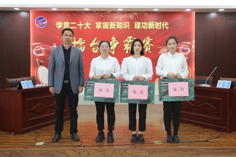 為全面貫徹落實(shí)黨的二十大精神,引導(dǎo)廣大職工學(xué)習(xí)新精神、領(lǐng)悟新思想、儲(chǔ)備新知識(shí),營(yíng)造學(xué)思踐行的濃厚氛圍,5月9日下午,青口投資公司工會(huì)舉辦“學(xué)貫二十大 掌握新知識(shí) 建功新時(shí)代”擂臺(tái)爭(zhēng)霸賽。公司領(lǐng)導(dǎo)史祥平、梁永、朱文兵、楊青松出席活動(dòng)。來(lái)自公司的10支代表隊(duì)參加了比賽。