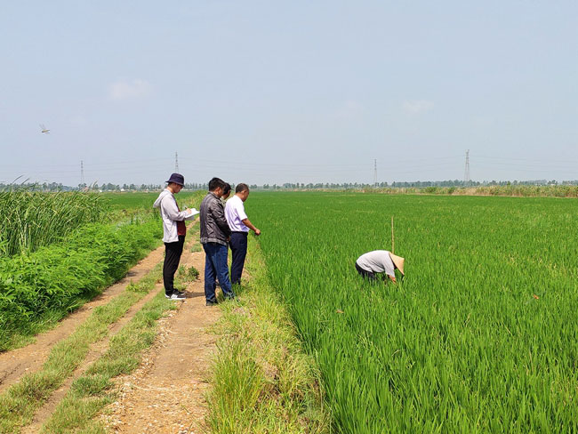 針對(duì)近期高溫高濕天氣,為做好水稻生產(chǎn)管理中期生產(chǎn)工作, 7月25日,農(nóng)場(chǎng)管理人員和農(nóng)技師頂著烈日深入田間地頭,對(duì)水稻基本苗的苗情苗量、病蟲(chóng)害情況、中期水漿管理逐條田組進(jìn)行水稻中期生產(chǎn)檢查,對(duì)下一步的水漿管理和綜合防治提出指導(dǎo)意見(jiàn),要求適時(shí)擱田,并于7月底至8月上旬進(jìn)行一次綜合防治。 (陳 ?。?/span>