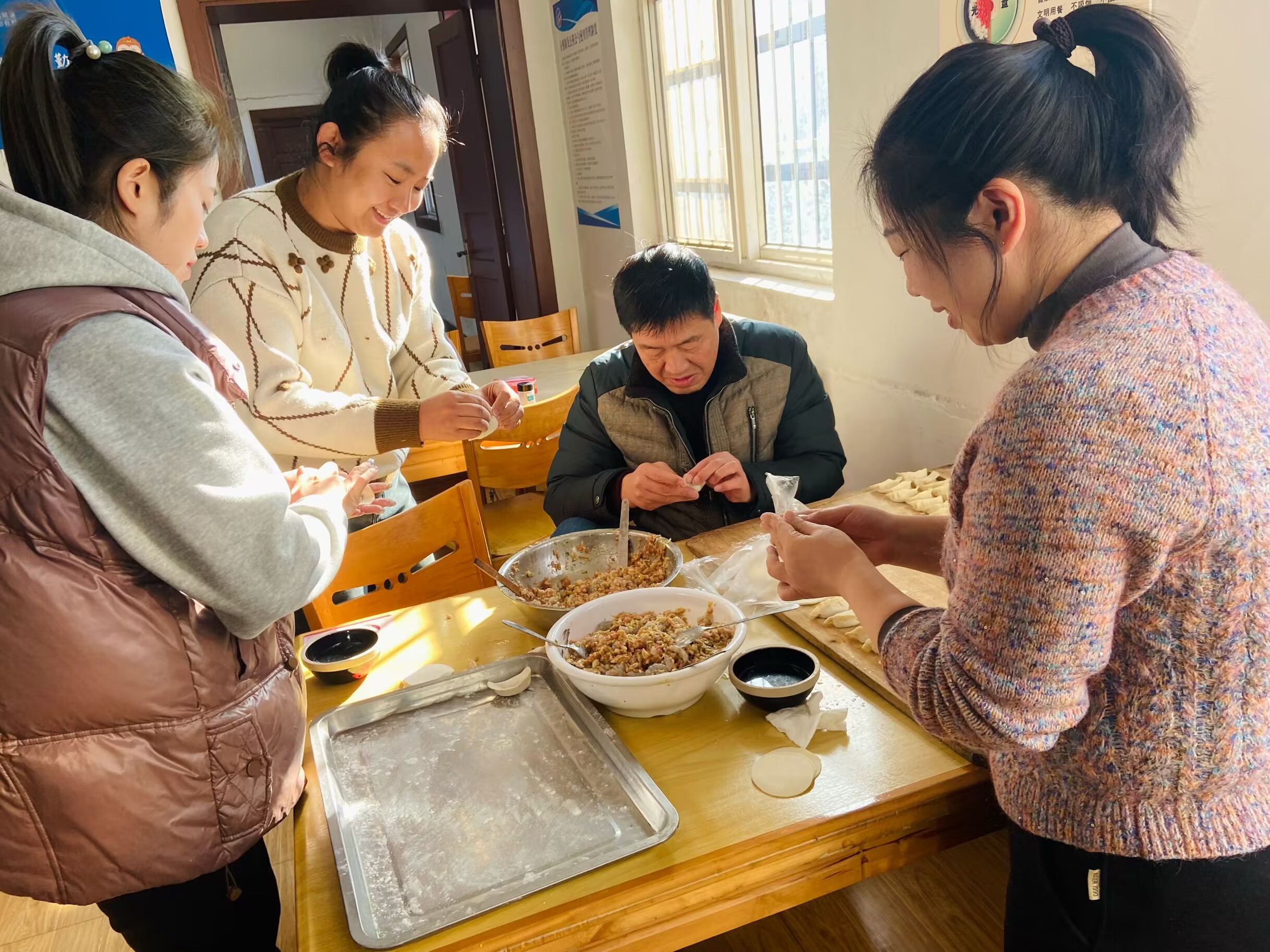 ? ? ? ?活動(dòng)現(xiàn)場(chǎng)熱鬧非凡,食堂早早為職工們備好了餃子餡兒和餃子皮,大家有說有笑,配合默契,有的負(fù)責(zé)拌餃餡、有的負(fù)責(zé)包餃子,忙得好不熱乎。大家一邊嘮著家常,一邊互相切磋包餃子的技巧,對(duì)比著各自餃子不同的形狀,有人包的是元寶狀,有人包的是小船狀,在一陣陣歡聲笑語中,口味不一的餃子就這樣展現(xiàn)在大家面前。當(dāng)一盤盤熱氣騰騰的餃子端上桌,食堂瞬間香飄四溢,能夠共同制作美食,吃著自己親手包的餃子,大家紛紛表示,今冬過上一個(gè)不一樣的冬至,感受到了“大家庭”的溫馨。