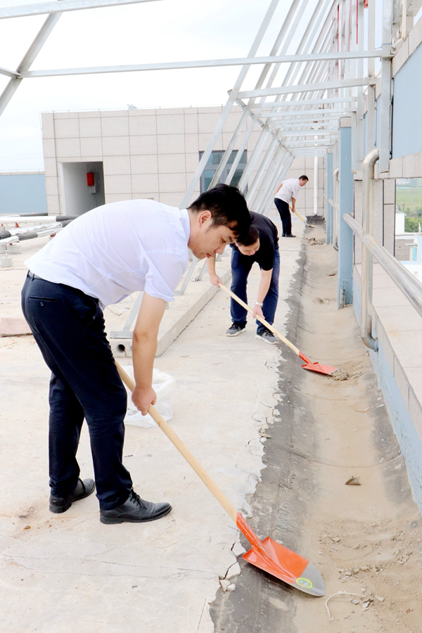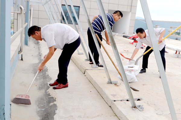 為凈化、美化公司辦公樓樓頂環(huán)境,消除積水隱患,826日上午,公司組織黨員、團(tuán)員青年志愿者開展了專項清理整治行動。志愿者不畏艱辛,對樓頂進(jìn)行了細(xì)致清掃,認(rèn)真疏通排水口,力爭陰雨天氣不再出現(xiàn)積水現(xiàn)象。(神特宣)
