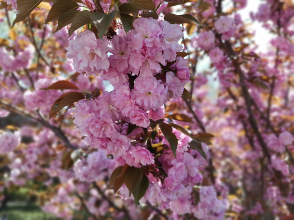 隨著梅花、迎春花、玉蘭花、杏花桃花的陸續(xù)謝幕,海棠花們開始華麗登場。有著藍(lán)天白云的映襯,明媚陽光照耀下的海棠花千嬌百媚,一團(tuán)團(tuán),一簇簇,你挨著我,我擁著你,粉粉嫩嫩,不正像走出病毒霧霾,露出久違笑容的人們的笑臉嗎?