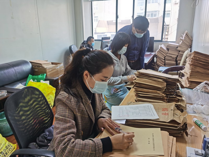 在檔案整理現(xiàn)場,大家通力配合,有的整理檔案、有的輸入電腦、有的仔細核對,加班加點做好退休人員基本信息和檔案整理、登記造冊等工作,有條不紊、熱火朝天。工作人員層層壓實責任,細化任務(wù)分工,編制移交清單,對各個時期的人事檔案材料及時進行梳理、鑒別、整理、裝訂,確保內(nèi)容真實準確、材料齊全完整。此次涉及移交檔案1580卷,已經(jīng)完成1300余卷,其余部分將于近期陸續(xù)完成。