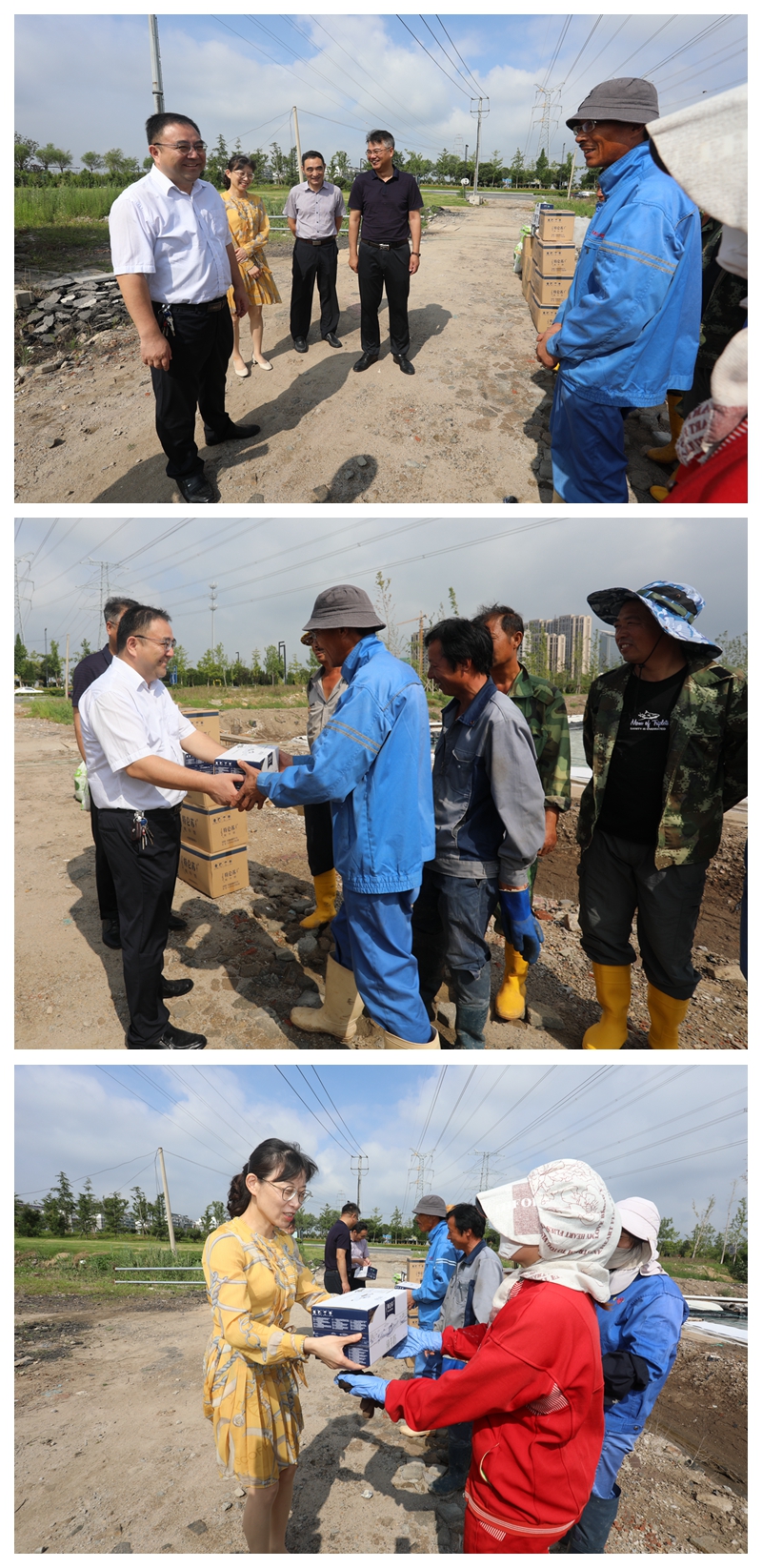 “大家辛苦了!天氣炎熱,注意防暑”“要避開高溫時段作業(yè),靈活調增上班時間,身體才是第一位”楊龍董事長和汪群書記將防暑消暑物品送到生產現場每一位職工手里,同時關切叮囑大家注意身體,做好防暑工作。