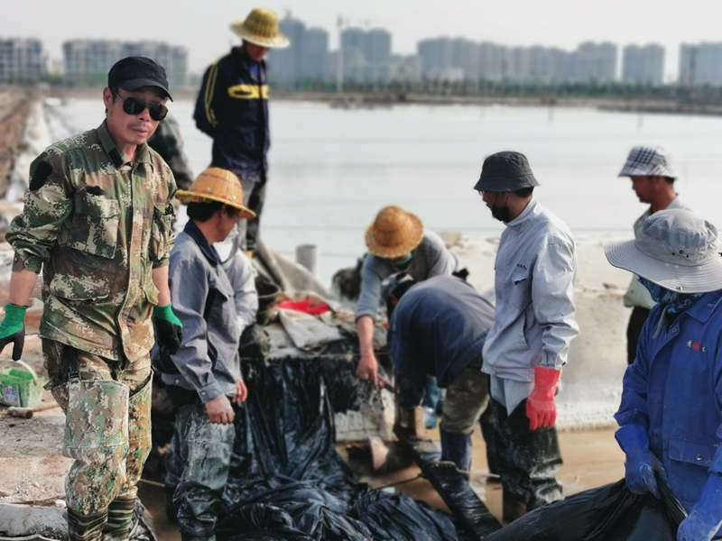 不到半天時間完成了數(shù)百米的塑布安裝