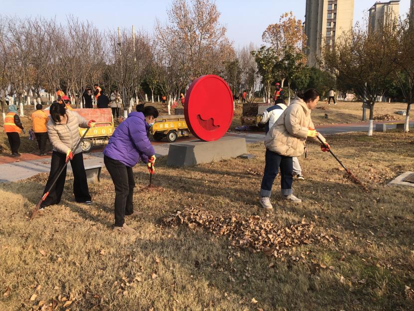 活動(dòng)現(xiàn)場(chǎng),黨員同志、積極分子分為兩撥,分別從創(chuàng)智綠園北門和東門對(duì)園內(nèi)雜草落葉進(jìn)行清除。在戴好手套,做好防護(hù)、防凍措施的同時(shí),紛紛拿著掃帚、耙子工具,統(tǒng)籌安排、分工勞作,齊心協(xié)力,有的用掃帚掃落葉、有的用袋子裝落葉、有的用耙子摟落葉……大家忙得熱火朝天,充分發(fā)揚(yáng)不怕臟、不怕苦、不怕累的黨員先鋒本色,創(chuàng)智綠園內(nèi)處處是同志們清理雜草落葉的身影,構(gòu)成了一道亮麗的風(fēng)景線,經(jīng)過一個(gè)多小時(shí)的辛勤勞動(dòng),兩撥隊(duì)伍順利“會(huì)師”,沿途雜草落葉被清理得干干凈凈,公園環(huán)境也得到明顯改善。