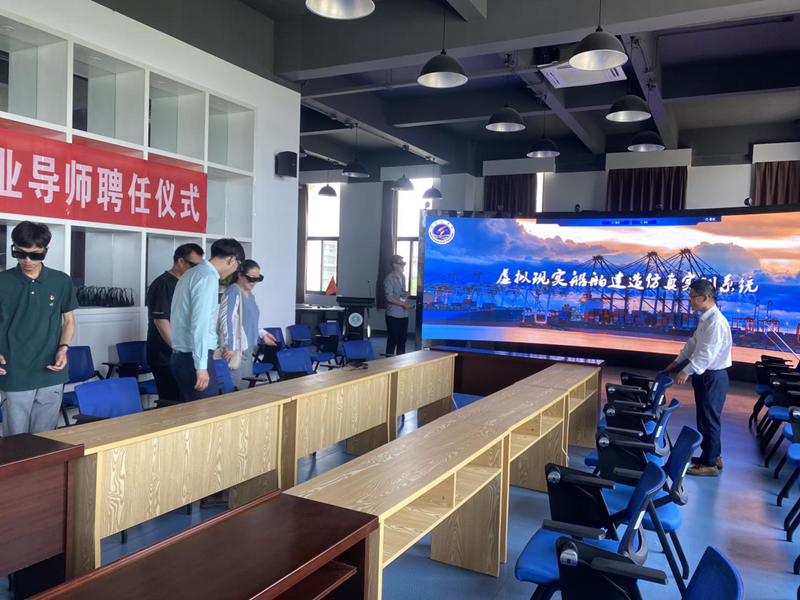 美多利公司到淮工學(xué)習(xí)體驗(yàn)“虛擬現(xiàn)實(shí)船舶建造仿真實(shí)訓(xùn)系統(tǒng)”