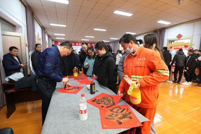 現(xiàn)場開展的寫“福”送“?!被顒?,與項目比賽同頻共振,在喜慶的音樂聲中把一張張紙紅墨香的“?!弊炙蛡€每一名職工,為營造喜樂福滿的“新春賽場”增色添彩,增強職工的成就感和幸福感。(徐宣 徐工)
