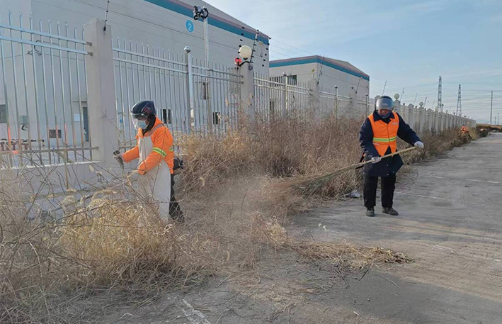 該分公司園區(qū)兩個(gè)班組近35名保潔勇士,無(wú)懼低溫刺骨天氣,匯聚石化十路、石化三道道路兩側(cè)。勞動(dòng)現(xiàn)場(chǎng),黨員骨干示范帶頭作用處處體現(xiàn)。石峰、朱海勇、楊靜身背幾十斤重打草機(jī),無(wú)所怨言,持續(xù)工作時(shí)長(zhǎng)達(dá)三個(gè)多少時(shí)。在他們的帶動(dòng)下,班組人員一字排開(kāi),分工明確,各負(fù)其責(zé)。