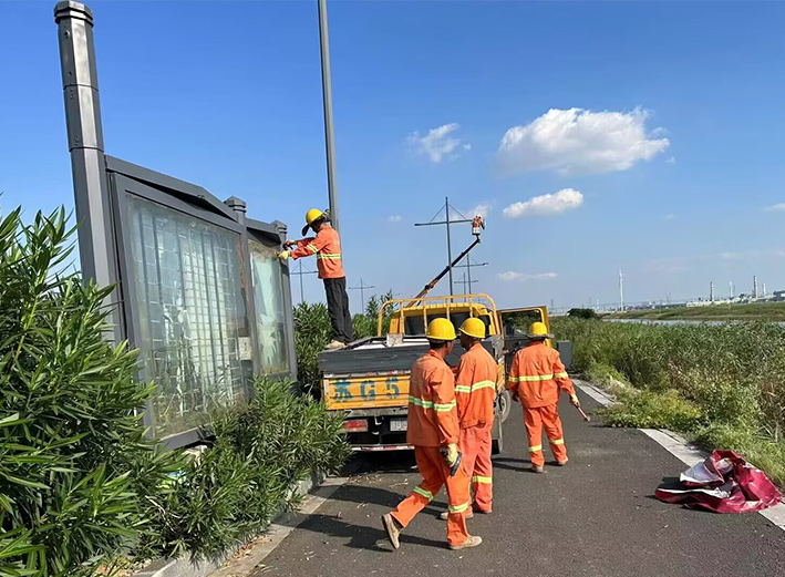 為更好凈化“馬拉松”沿線路域環(huán)境,近日,市政分公司依法集中對海濱大道沿線13處銹蝕嚴(yán)重廣告牌進(jìn)行拆除,保障了民眾出行安全,美化了城區(qū)環(huán)境。