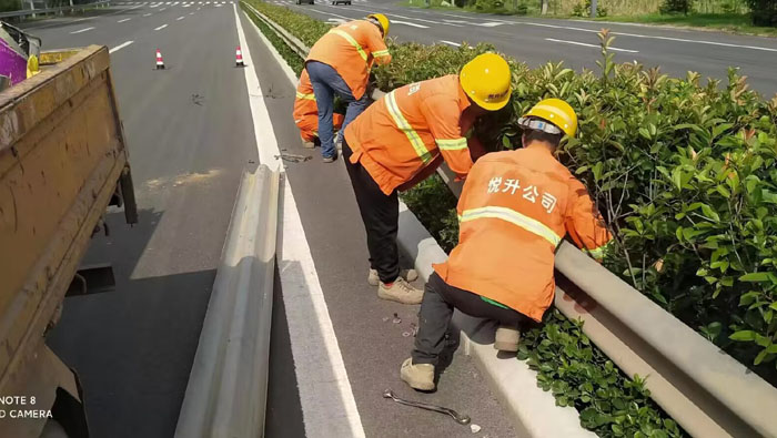 近日,市政分公司道路養(yǎng)護(hù)班組在安全巡查中,發(fā)現(xiàn)徐新路路段多處波形護(hù)欄被撞受損,存在一定的安全隱患。為確保過往車輛安全通行,市政分公司立即組織人員,調(diào)派車輛和材料及時(shí)對(duì)已損壞的波形護(hù)欄進(jìn)行更換、修復(fù)。